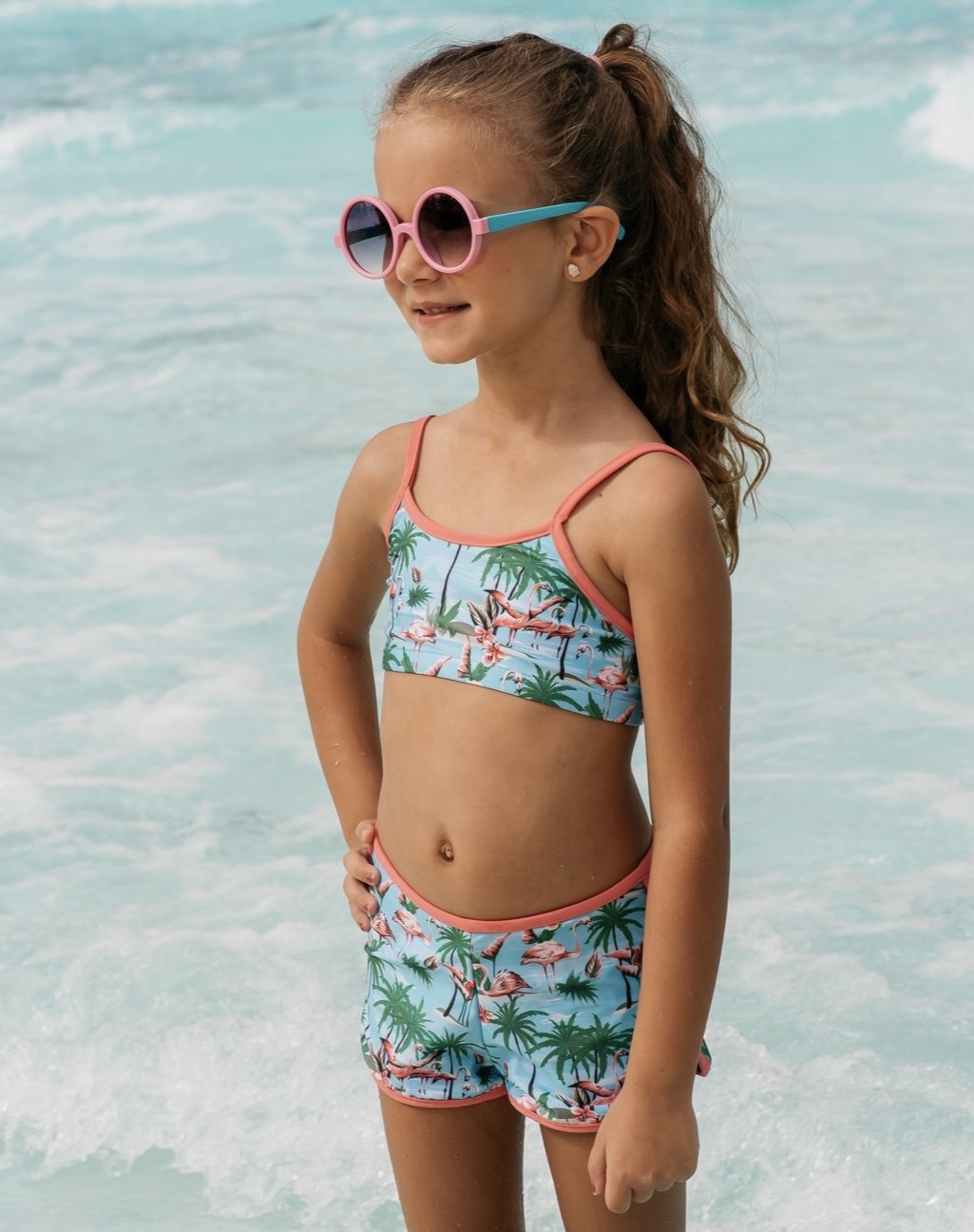 Biquíni flamingo com shorts
