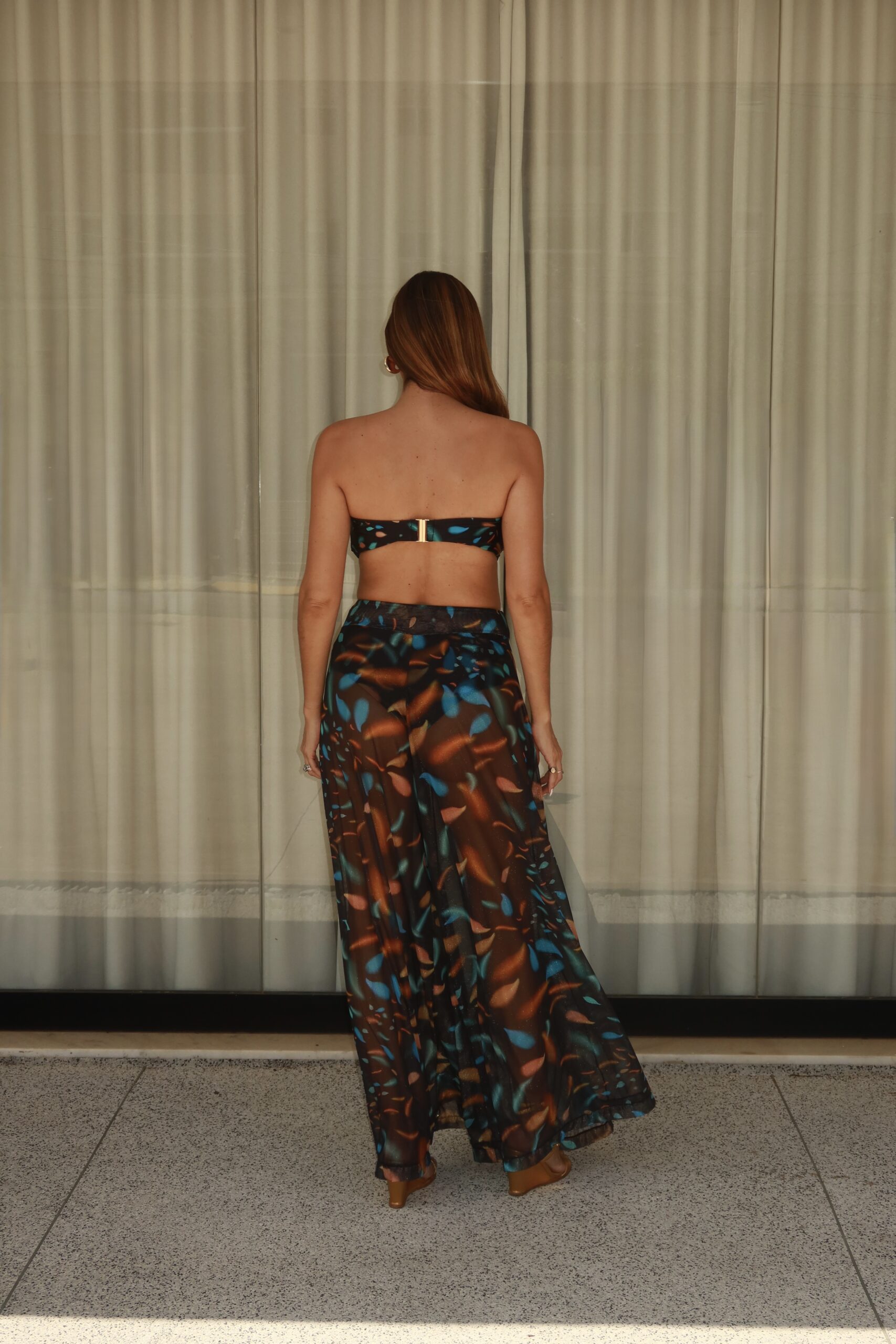 Calça em tule com prega macho, detalhe que forma uma dobra voltada para dentro, criando volume e movimento sutil. O tule traz leveza e transparência delicada, resultando em um visual elegante e fluido.